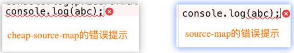 };经过 babel 处理过的 JS 代码会把一些空格去掉,导致无法精确定位到错误信息,比如原先是第 9 行报错,但是如果使用 cheap-source-map 的话,由于 JS 代码的一些空格被去掉了,可能报错就跑到第 7 行去了,此时使用 cheap-module-source-map 就不会去除 JS 代码的空格,能够更加精准的捕获到错误的信息。