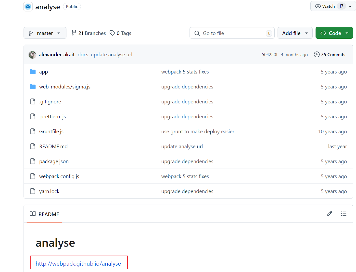 只能把这个项目 clone 下来,然后安装依赖跑起来,把生成的 stats.json 拖进去,就可以看到分析信息