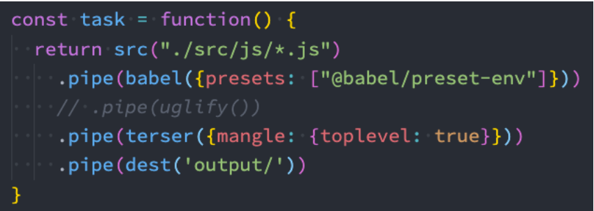 • 使用 gulp-babel,gulp-terser 插件;