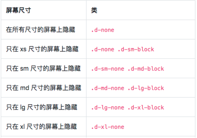 <h1 class="d-md-none d-lg-block">某个元素只在 md(>=768px) 屏隐藏;</h1>实用的工具类(Utility classes)