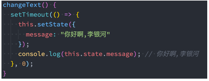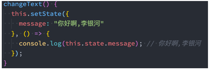 this.setState({ message: "你好啊, 李银河" }, () => {