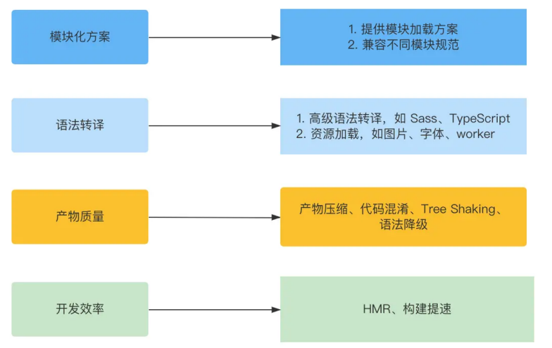 • 产物质量方面,在生产环境中,配合 Terser 等压缩工具进行代码压缩和混淆,通过 Tree Shaking 删除未使用的代码,提供对于低版本浏览器的语法降级处理等等。